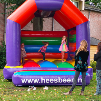De kinderen maken gretig gebruik van het springkussen en je ziet ze genieten. Papa en mama dus ook.