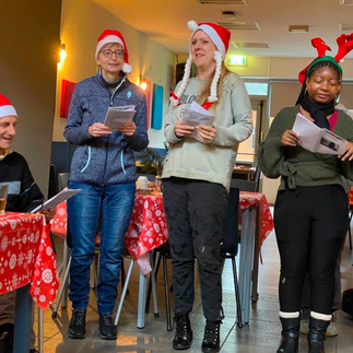 Dit jaar zijn we al een week van te voren gestart met het Kerstkoor op te zetten. Om liederen voor de Kerst Inn te oefenen. Anna en Geraldine samen met Michiel die gitaar speelt hebben op beide dagen prachtig de kerstliederen begeleid. We hebben Kerststukjes gemaakt en wensen voor in de boom geschreven. Ook hebben we vrijdagmiddag afgesloten met glühwijn.